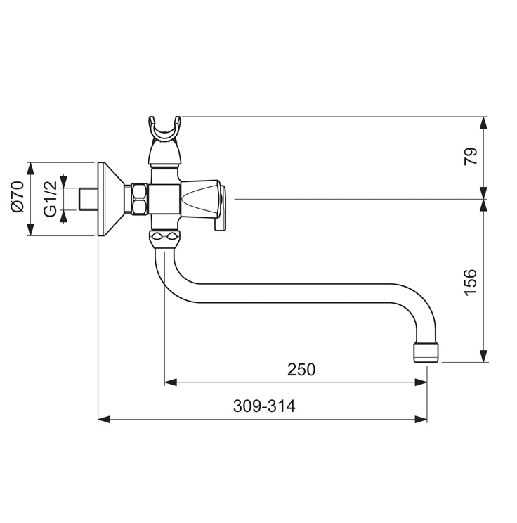 Расстояние от стены до аэратора, мм: 309-314