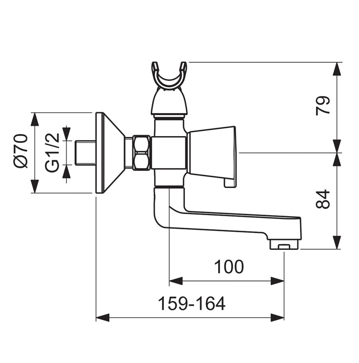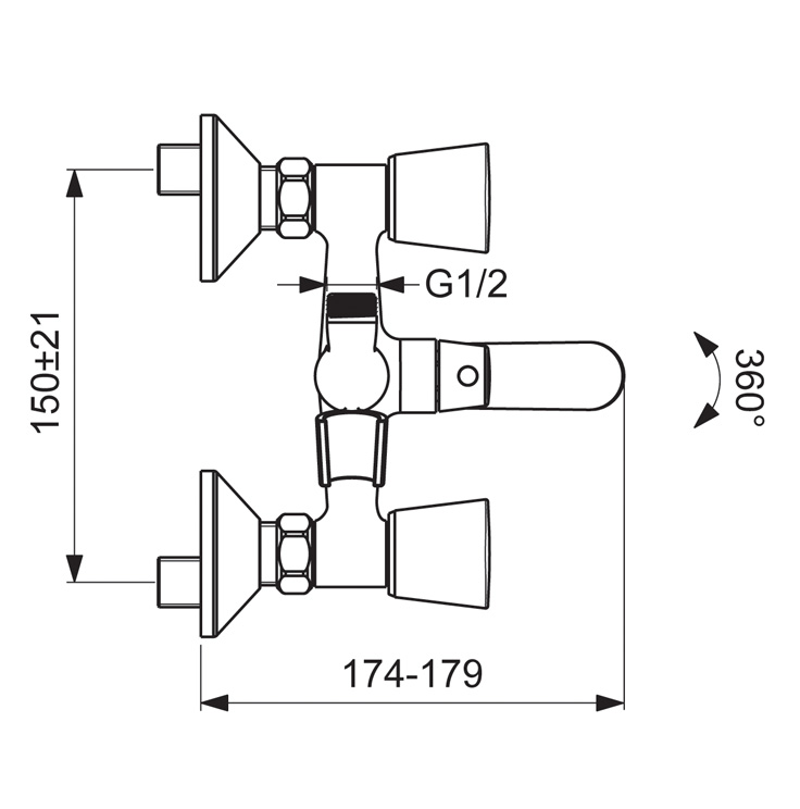 Переключение ванна/душ: ручное (позволяет использовать функцию “душ” даже при очень низком давлении воды)
