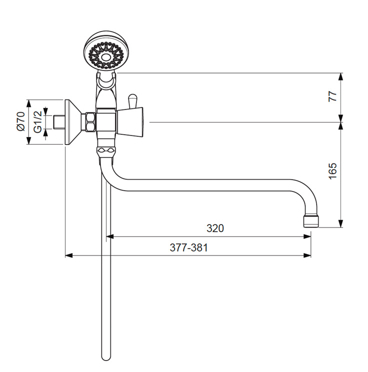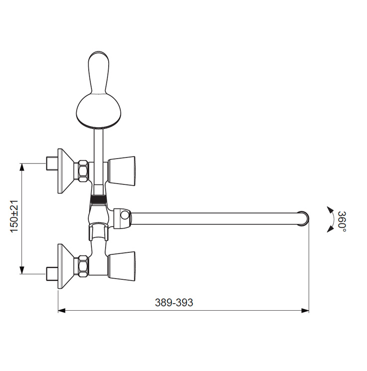Переключение ванна/душ: ручное (позволяет использовать функцию “душ” даже при очень низком давлении воды)
