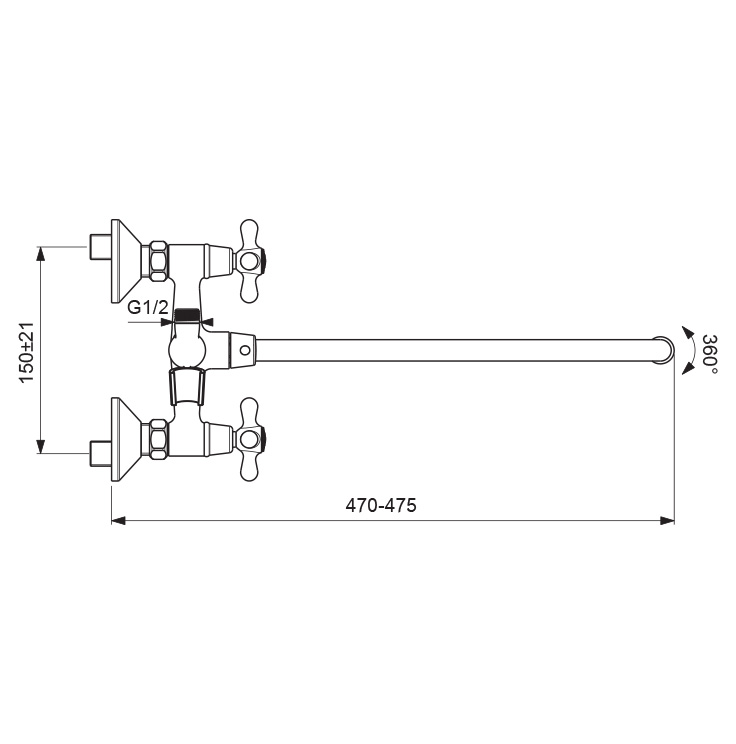 Угол поворота излива 360°