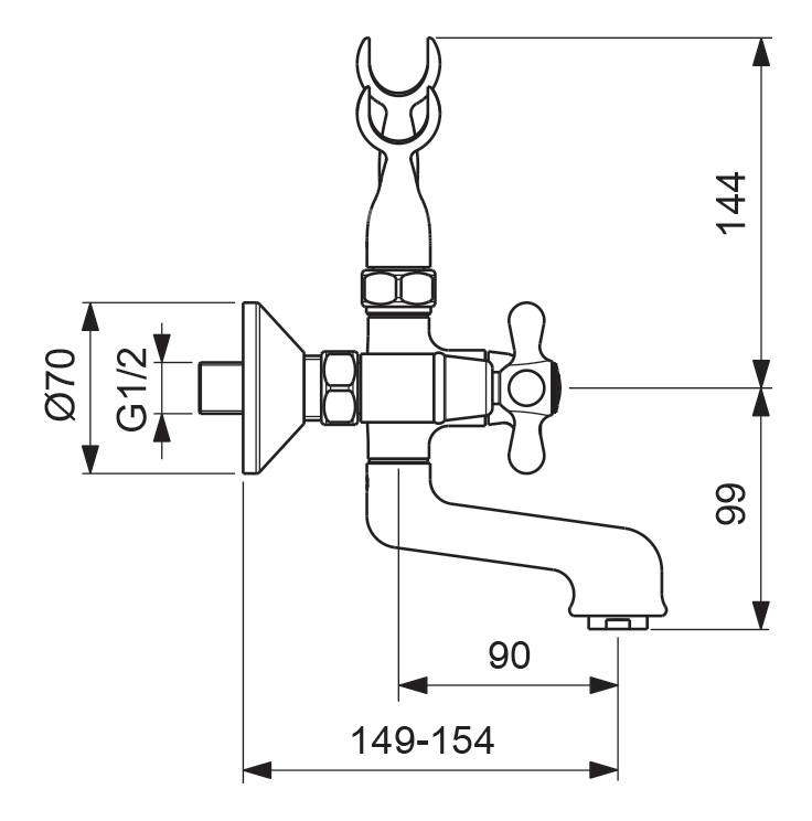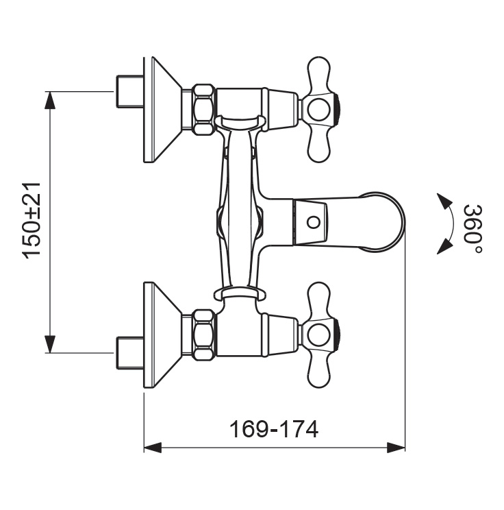 Переключение ванна/душ: ручное (позволяет использовать функцию “душ” даже при очень низком давлении воды)
