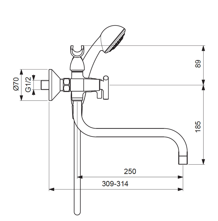 Переключение ванна/душ: ручное (позволяет использовать функцию “душ” даже при очень низком давлении воды)