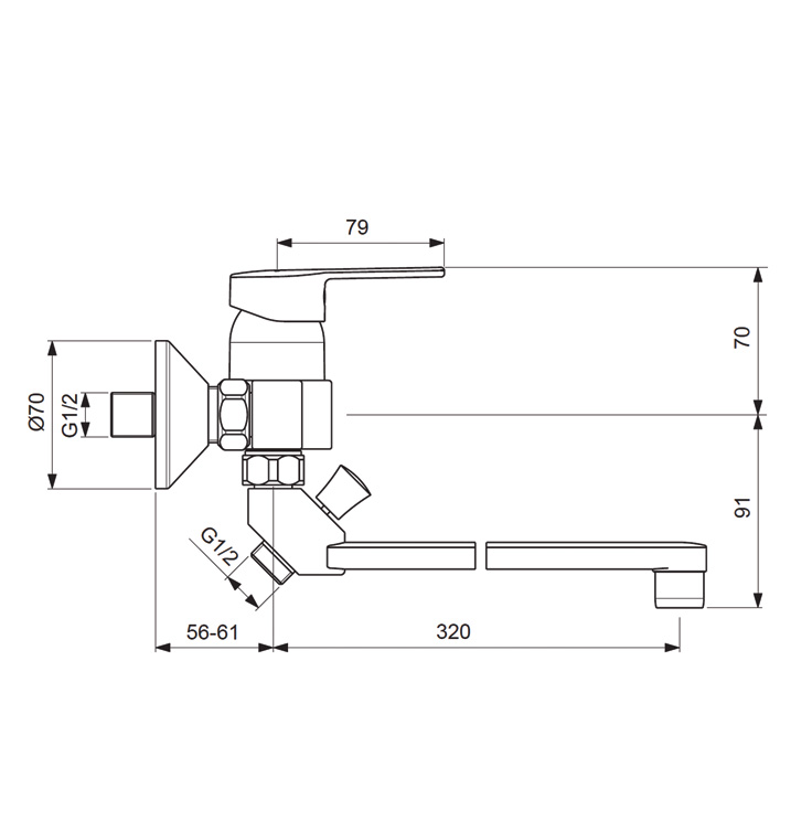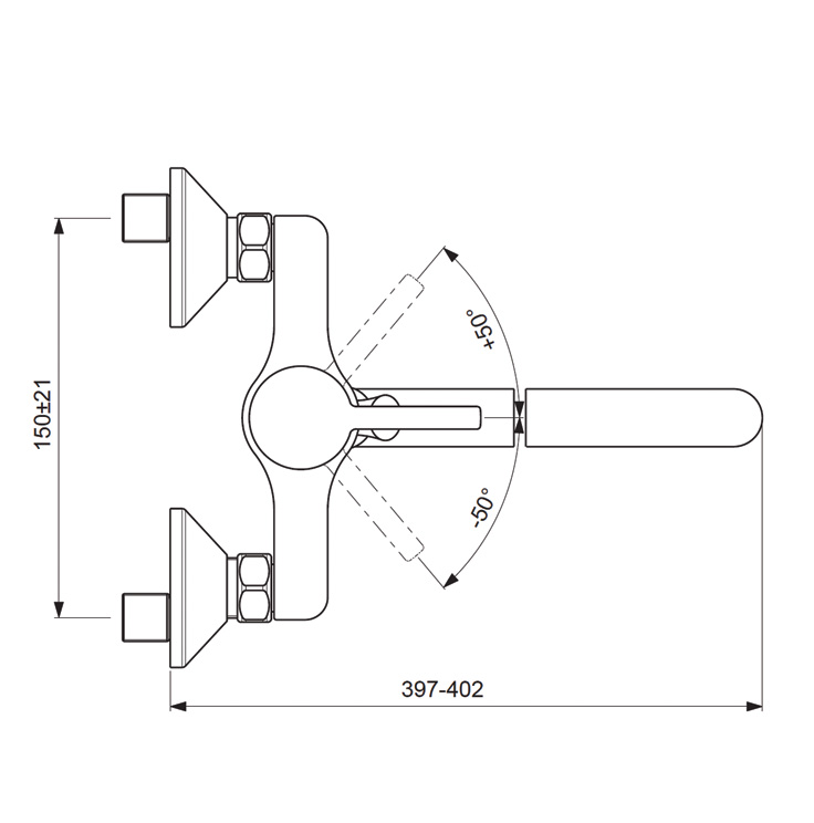 Переключение ванна/душ: ручное (позволяет использовать функцию “душ” даже при очень низком давлении воды)