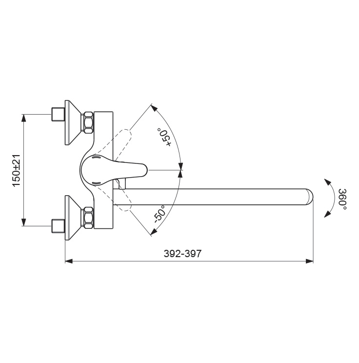 Переключение ванна/душ: ручное (позволяет использовать функцию “душ” даже при очень низком давлении воды)