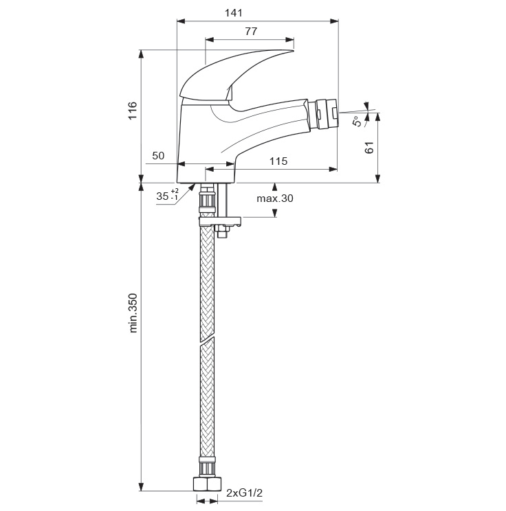 Длина излива, мм: 115