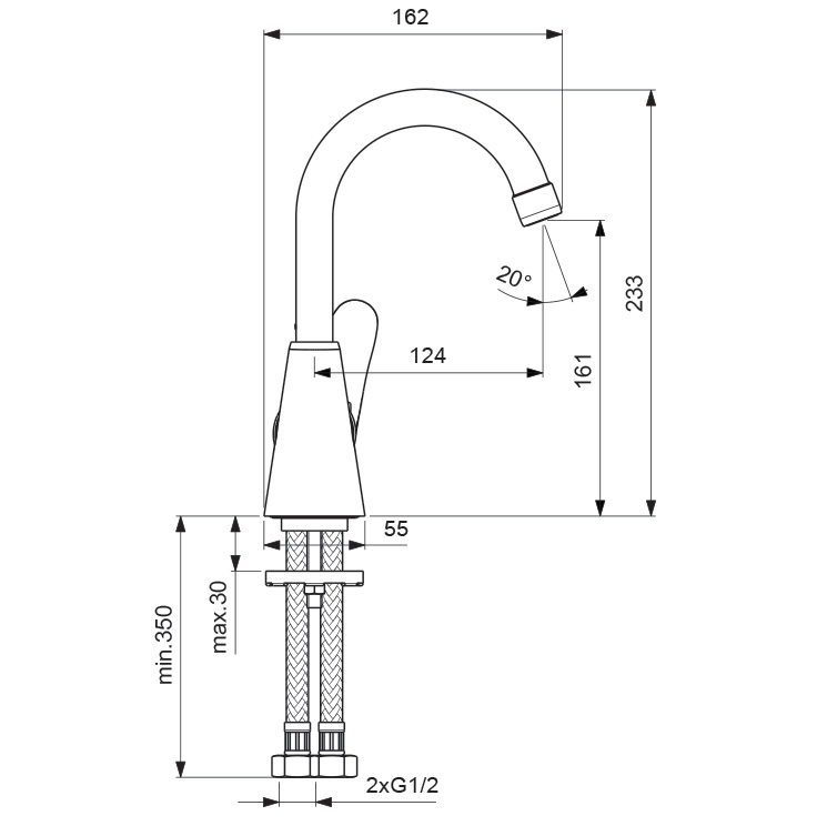 Длина излива, мм: 124