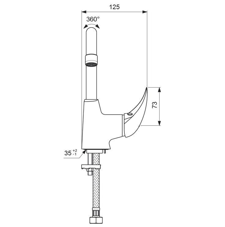 Угол поворота излива 360°