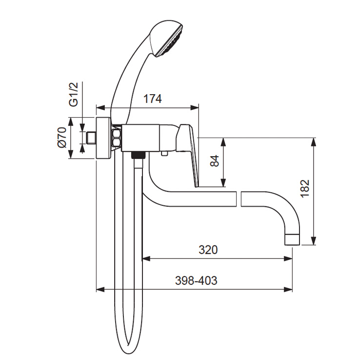 Переключение ванна/душ: ручное (позволяет использовать функцию “душ” даже при очень низком давлении воды)